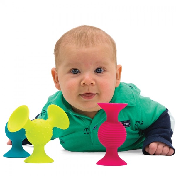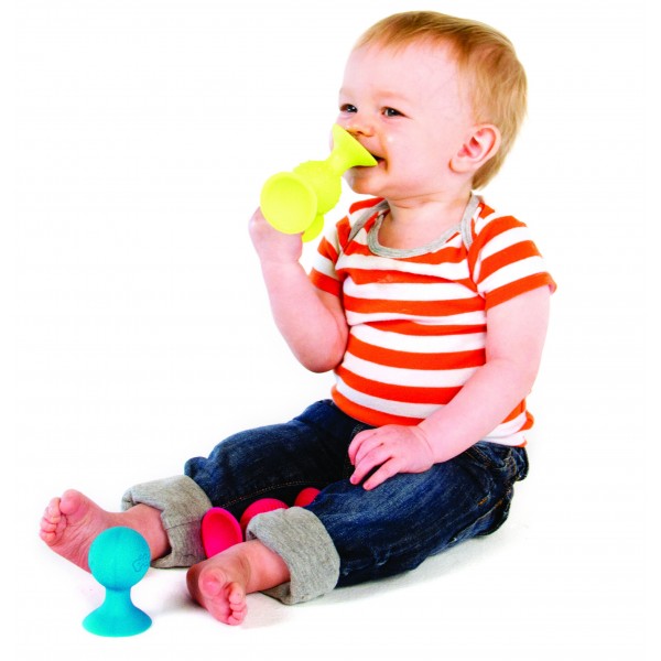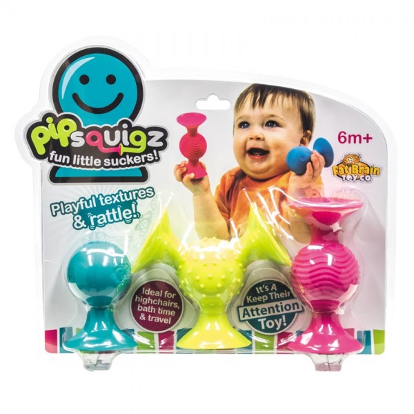 O etapa cruciala de dezvoltare pentru sugari este integrarea senzoriala, iar pipSquigz a reusit sa imbine simtul tactil (muchiile ondulate), sunetul (huruie linistitor sau pop exploziv), vederea (culorile calde si zambetul in relief) precum si simtul gustativ (o jucarie de dentitie).