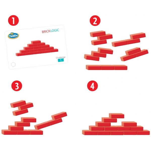 Brick By Brick te provoaca sa construiesti un zid de cărămidă simetric din cinci piese de puzzle conform cu imaginile de pe cele 60 de carduri cu provocari. Introdus în 1990, Brick By Brick este o provocare spatială fantastica ce continua sa aiba un foarte mare succes.