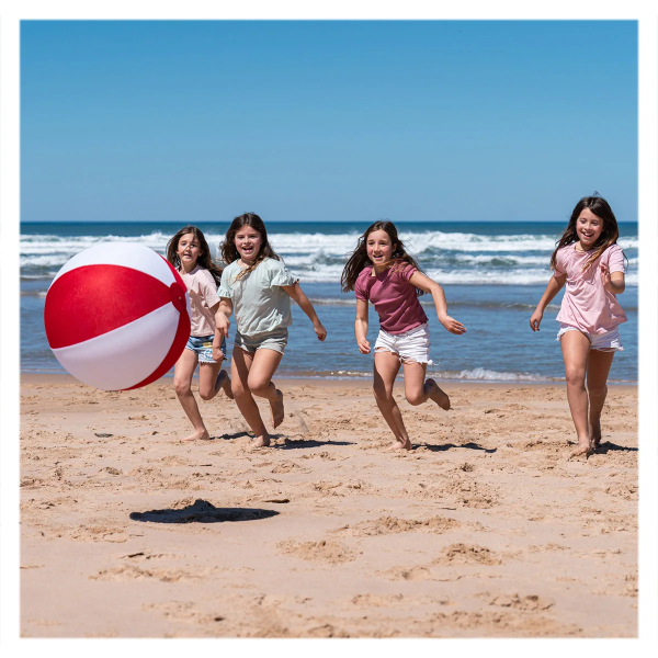 Această minge roșie este potrivită pentru copii începând cu 3 ani, dar poate fi folosită și de cei mai mari pentru activități sportive sau jocuri de grup. Materialul durabil îi asigură rezistența necesară pentru joaca constantă.