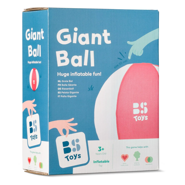 Mingea uriașă gonflabilă de la BS Toys este concepută pentru joacă activă și mișcare. Cu un diametru generos de aproximativ 50 cm, poate fi aruncată, rostogolită sau lovită, oferind multă distracție pentru copii, în interior sau în aer liber.