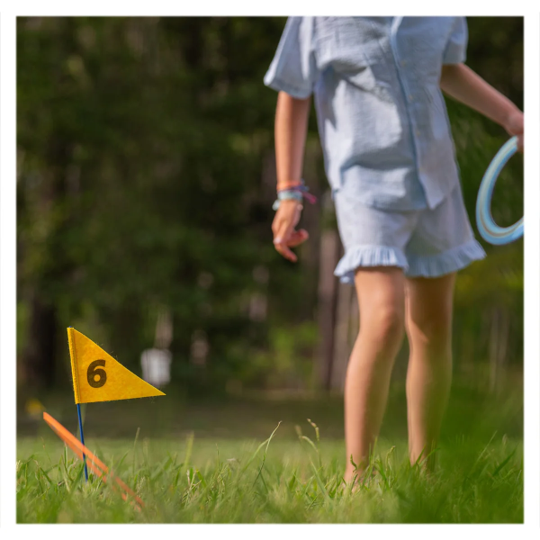 Perfect pentru grădină, plajă, parc, ieșiri la iarbă verde sau petreceri în aer liber, acest joc de disc golf încurajează mișcarea activă. Copiii pot exersa aruncările de la distanțe diferite și își pot îmbunătăți abilitățile în timp ce se bucură de ieșirile în natură.