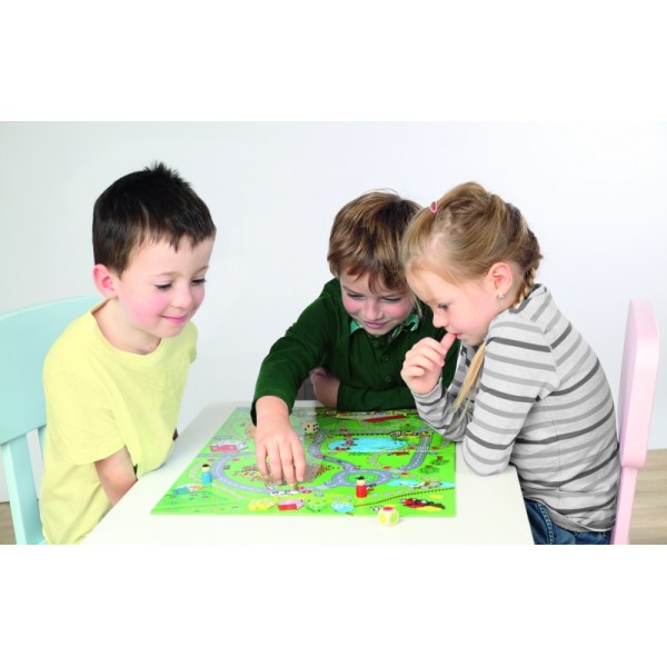 Jucatorii arunca zarurile si muta pionii spre gradinita.