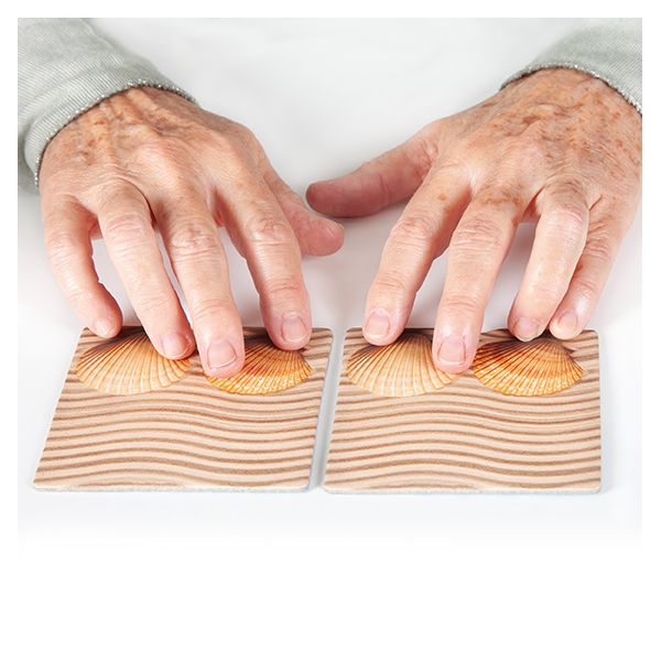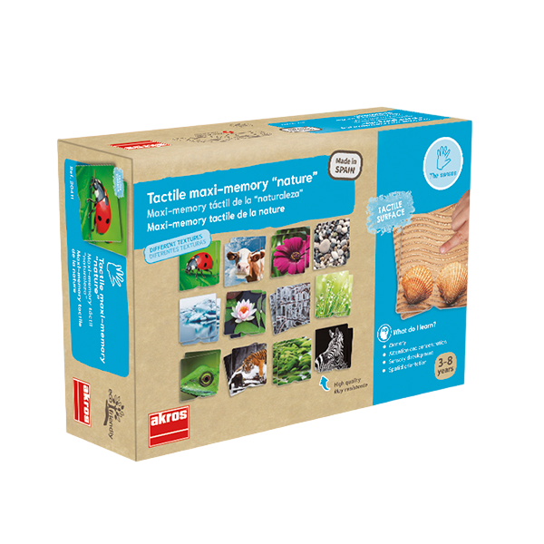 Un joc de memorie tactilă cu format mare, cu diferite texturi care prezintă imagini reale ale mediului nostru pentru a lucra la discriminare tactilă, memorie vizuală și atenție prin atingere.