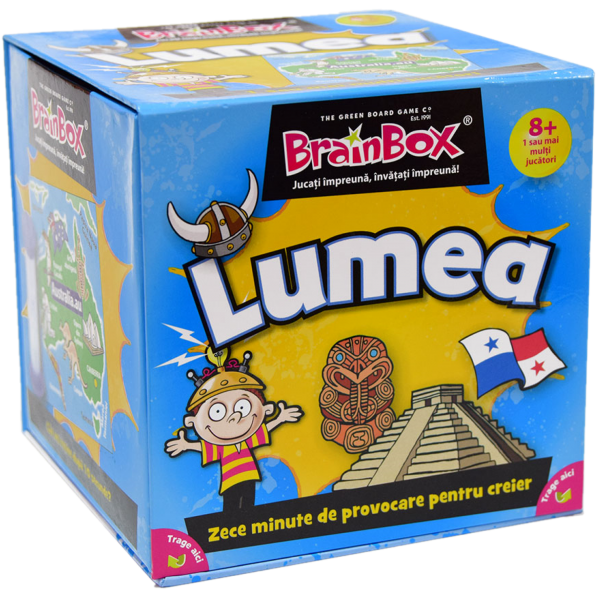 Primul joc din gama BrainBox, conceput pentru a fi jucat în familie, va îmbunatați spiritul de observație și capacitatea de memorare precum și cunoștințele despre lumea în care trăim. Actualizat în permanență, fiecare cartonaș al unei țări prezinta capitala, steagul, granițele precum și imagini reprezentative și elemente culturale. În prezent tradus în 20 de limbi, BrainBox - Lumea este un joc clasic de familie.
