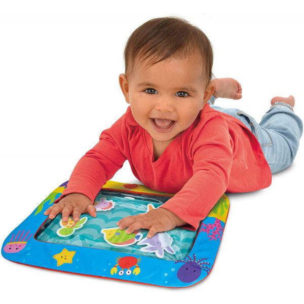 Incurajeaza joaca micutului tau cu aceasta salteluta in culorile oceanului. Priveste cum prietenii din ocean se misca atunci cand bebelusul pune presiune pe suprafata transparenta a saltelutei, si felul in care acesta invata cauza si efectul.