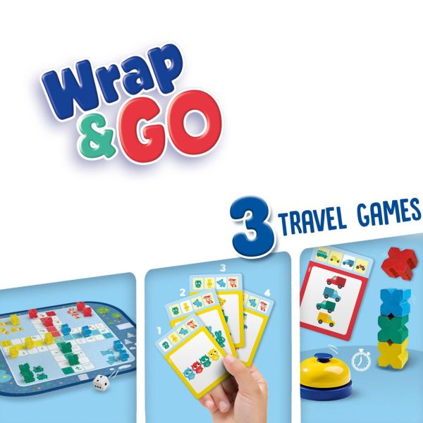 Set de 3 jocuri copii - Ludo, Quartet si Blocuri de viteza. Set de 3 jocuri copii - Ludo, Quartet si Blocuri de viteza - ideal pentru zilele de afara, vacante sau doar acasa. Wrap&Go este o serie distractiva de jocuri si fiecare tabla de joc poate fi pliata intr-o geanta compacta de depozitare, care contine trei jocuri.