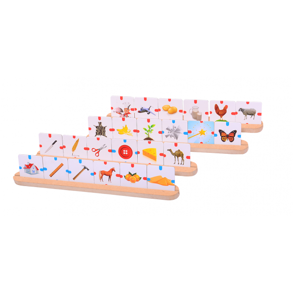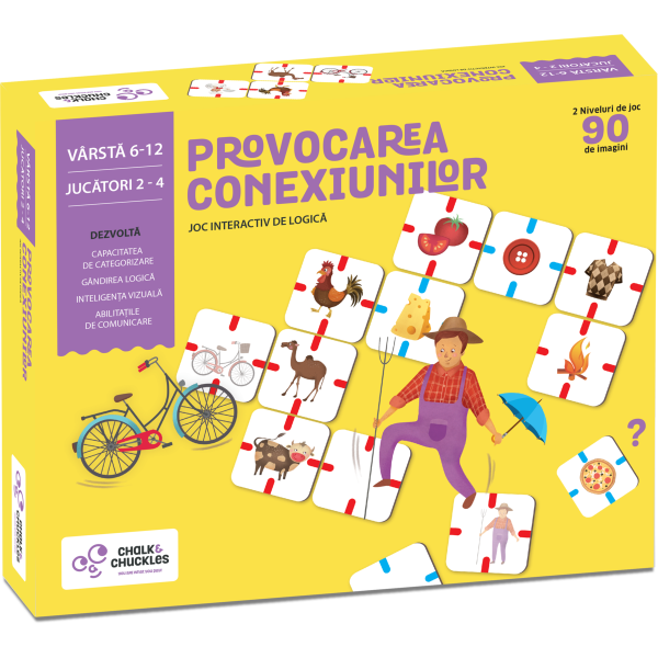 In plus, nu depinzi de nici o tablita de joc-ai nevoie doar de o suprafata dreapta pe care sa pui piesele! Ajuta piesele de joc cu imagini sa se "imprieteneasca", descoperind nenumarate conexiuni logice intre ele. Cu cat vei face mai multe conexiuni intre piese atunci cand este randul tau, cu atat mai multe puncte vei primi. Rosteste cu voce tare argumentul pentru conexiunea respectiva si vezi ce parere au prietenii tai! Oare vor accepta sau vor respinge argumentul tau?