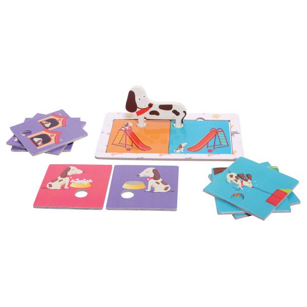 Catelusul cel istet stie care-i stanga si care-i dreapta si ce-i bine si ce-i rau! El descopera imediat cine e fericit si cine e suparat. Alatura-te catelusului istet intr-un joc deosebit de potrivire cu notiuni opuse.