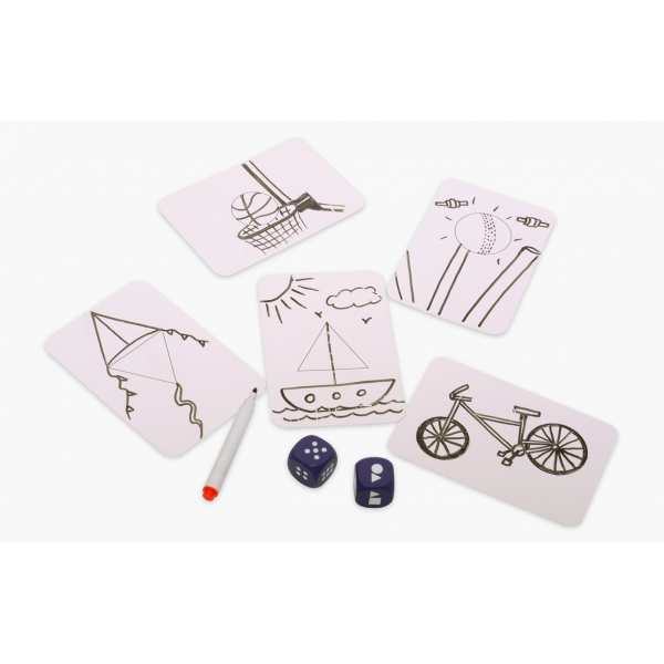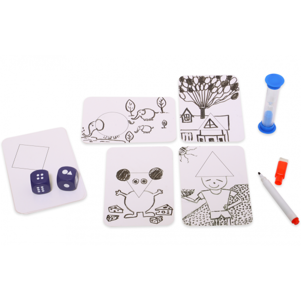 Jocul 3 -Povestirea prin cooperare: Amesteca cardurile si imparte un numar egal de carduri fiecarui jucator. Stabiliti o tema, titlu sau un final pentru povestire. Toti jucatorii deseneaza pe carduri tinand cont de tematica prestabilita. De fiecare data cand un jucator mentioneaza in povestire unul dintre elementele/obiectele desenate, el trebuie sa puna cardul respectiv cu fata in sus in centrul mesei. Jucatorul din dreapta povestitorului continua povestirea adaugand alte detalii si de indata ce mentioneaza un element/obiect de pe unul din cardurile sale, acesta este pus in mijlocul mesei cu fata in sus. Este randul urmatorului jucator. Jocul se termina cand toate cardurile au fost folosite. Scopul jocului este cooperarea intre jucatori care trebuie sa se foloseasca de elementele desenate pentru o face impreuna o poveste.