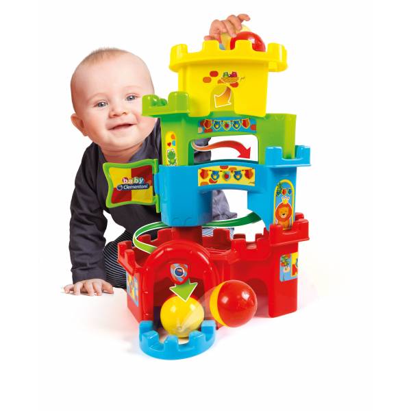 Castelul distractiv de la Baby Clementoni il indeamna pe cel mic la ore intregi de distractie! Copilul se poate juca cu mingea si o poate rostogoli in interiorul castelului, de-a lungul peretilor: aruncati mingea in varful turnului si urmariti cum aceasta cade prin diferitele niveluri pana cand se opreste in curtea din fata intrarii. Jucarie este perfecta pentru dezvoltarea abilitatilor manuale, intelegerea relatiei cauza-efect, stimuleaza imaginiantia si perceptia tactila. Varsta recomandata: 10 luni+. Nu necesita baterii.