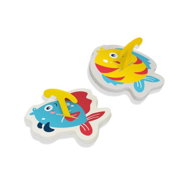 Contine: 2 tije din lemn; 8 pesti spuma; carlige de pescuit din plastic; geanta de depozitare textila; instructiuni.