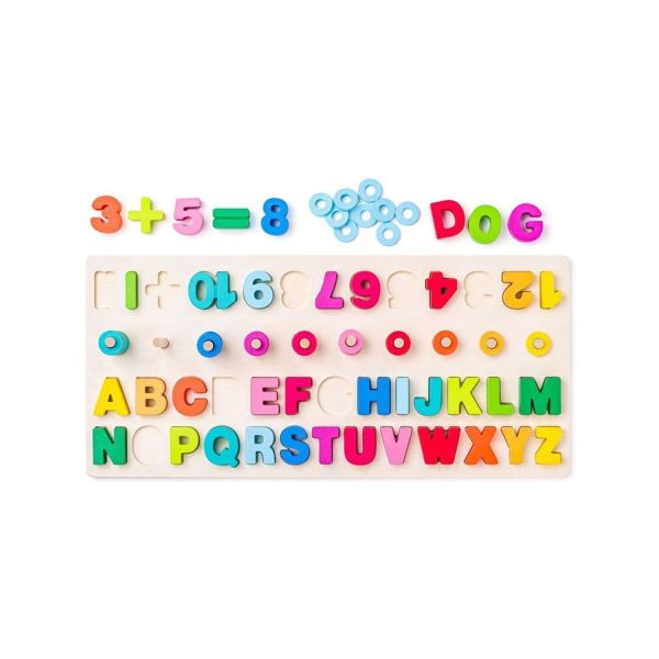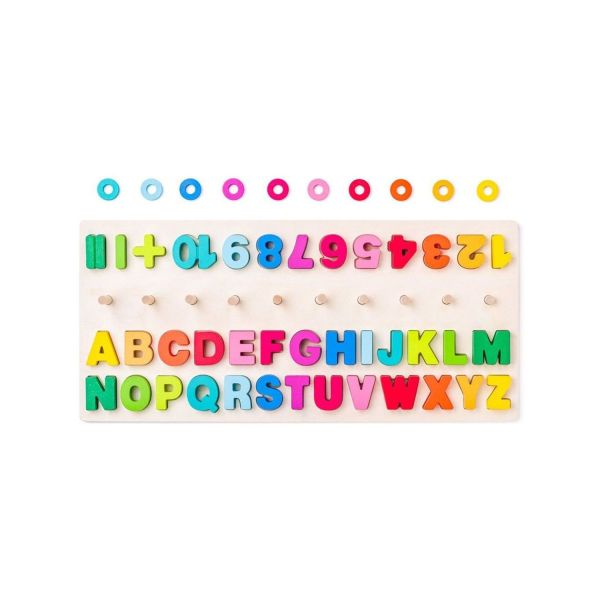 O jucarie didactica cu care copilul invata sa recunoasca literele, cifrele si datorita inelelor colorate, valoarea pe care acestea o reprezinta. Ei vor gasi aici si semnele matematice +/-/=, datorita carora pot invata sa calculeze chiar si exemple simple. Indepartarea si adaugarea numarului corect de inele de filetare ii va ajuta sa ajunga la rezultatul corect.