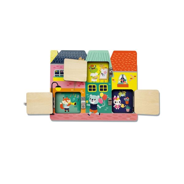 incuietori incurajeaza copiii sa le deschida si cand sunt deschise puteti vedea o ilustratie care spune o poveste fericita. Incuietorile pot fi deschise si inchise din nou si din nou pentru distractie nesfarsita.