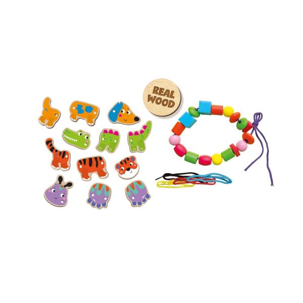 Acest set, format din douasprezece piese de animale si diferite forme de margele de lemn, ii tine distrati pe copii datorita aspectului amuzant al animalelor si este o activitate placuta. Piesele de animale pot fi atasate impreuna folosind sireturile, pentru a crea un animal complet de la cap pana la coada.