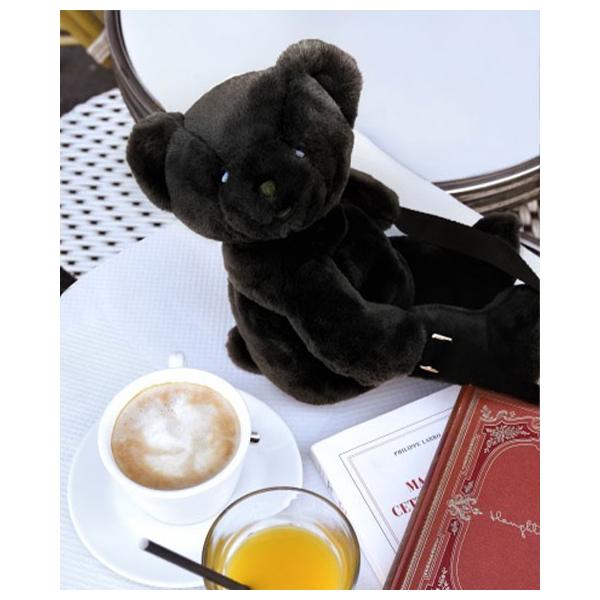 Ursulet din plus - geanta crossbody adorabila, 30 cm, Negru