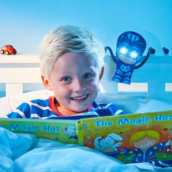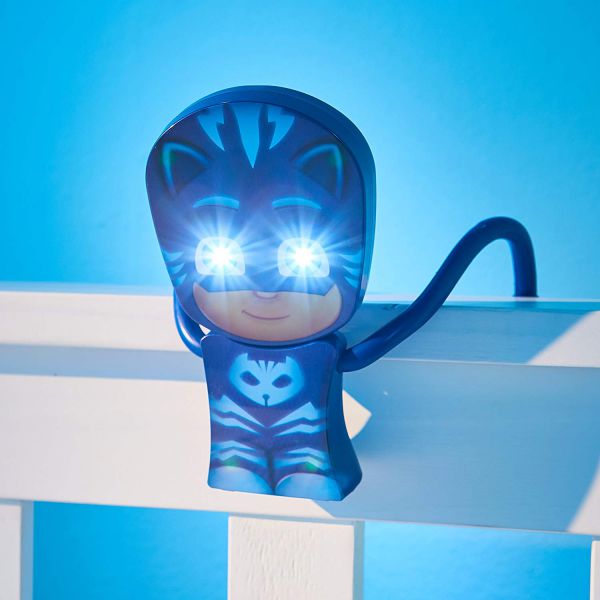 Luminați-vă drumul spre pat cu eroul Catboy de la PJ Masks. Un cadou ideal pentru fanii PJ, lanterna 2 in 1 și lumină de noapte. Poate fi un amic de jaoaca pe timpul zilei dar si o lampa de citit pe timp de. Micutul tau va adoarmi vegheat de personajul lui favorit. Amicul PJ Catboy ofera o lumina reconfortanta, in timp ce viseaza sa devina ei insusi un super-eroi! Functioneaza 10 minute si se opreste automat. Funcționează cu baterii; necesită 3 baterii AAA (nu sunt incluse). Potrivit de la 3 ani +