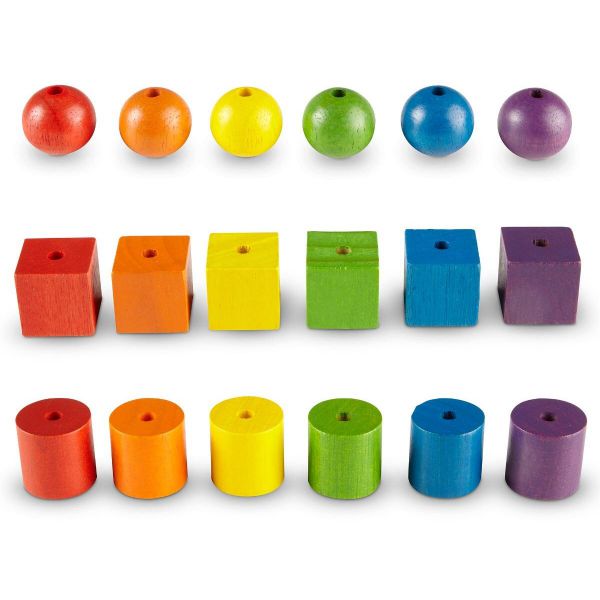 Cuburile, sferele si cilindrele colorate, realizate din lemn ajuta copiii sa invete notiuni de geometrice de baza. Setul include 20 carduri de activitati, 108 piese, 2 sfori de 92 cm si notite. Formele masoara 2 - 2.5 cm, iar cardurile 11 cm x 29 cm. Varsta recomandata: 4 - 7 ani.