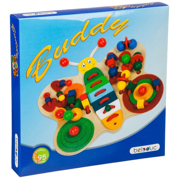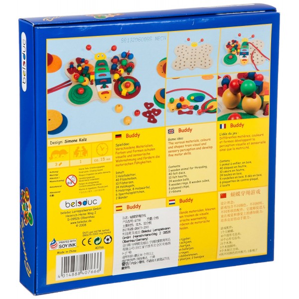 Jocul include diferite materiale, culori si forme pentru a promova abilitatile vizuale si senzoriale.