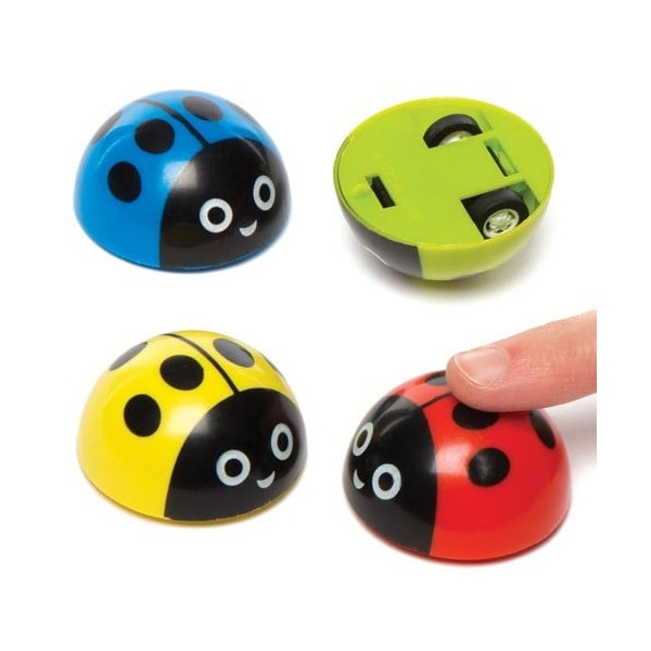 Setul include 4 buburuze vitezomane in 4 culori asortate - rosu, albastru, verde si galben