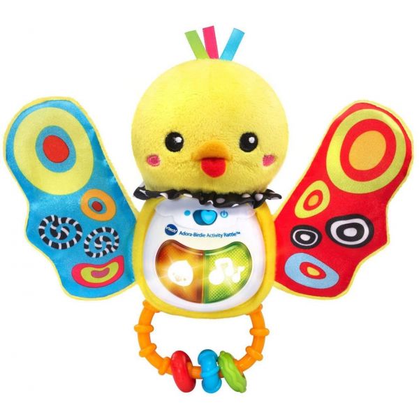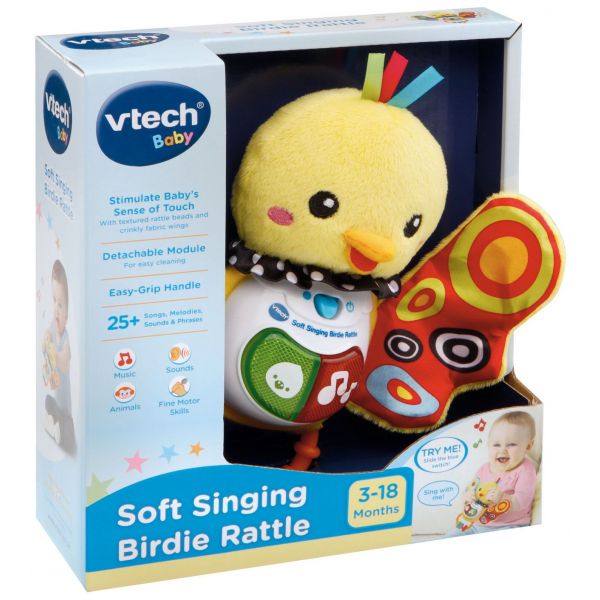 Scutura jucaria pentru a auzi ciripituri dragalase sau apasa cele 2 butoane luminoase pentru a auzi lucruri despre pasare, muzica distractiva, cantece si sunete.