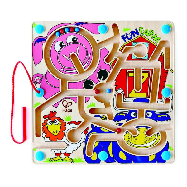 Hraneste animalele! O bagheta magnetica, care trebuie manevrata cu mana, strecoara biluta prin labirint. Acesta este acoperit cu geam de plastic, copilul trebuie sa-si foloseasca dexteritatea pentru a plimba biluta. Scopul jocului este ca bilele sa fie plimbate prin labirint pana cand ajung la sfarsit. Scopul jocului este ca bilele sa fie plimbate prin labirint pana cand ajung la sfarsit. Bagheta magnetica este prinsa cu un snur, pentru a nu se pierde. Jucariile sunt realizate din lemn, folosind materiale ecologice, vopsite in culori atragatoare cu vopsele nontoxice, care depasesc cele mai inalte si stricte standarde internationale de siguranta si calitate, precum EN71, ISO9001, ASTM F963 si altele. De multi ani, Hape a creat jucarii fantastice, de inalta calitate, folosind materiale ecologice si durabile, fiecare produs fiind atent proiectat pentru a stimula abilitatile senzoriale, fizice si emotionale.