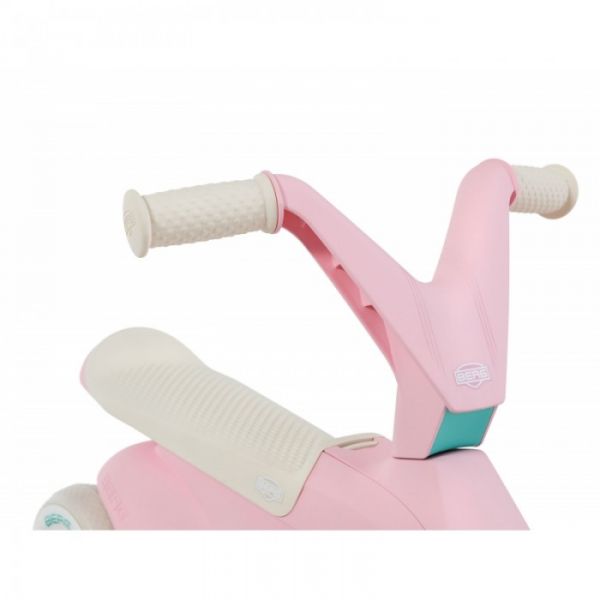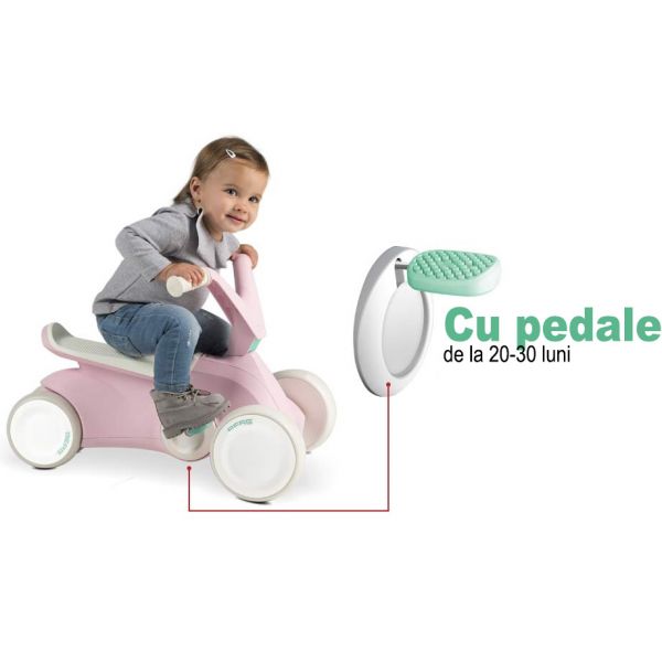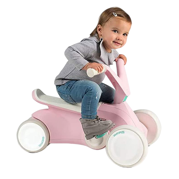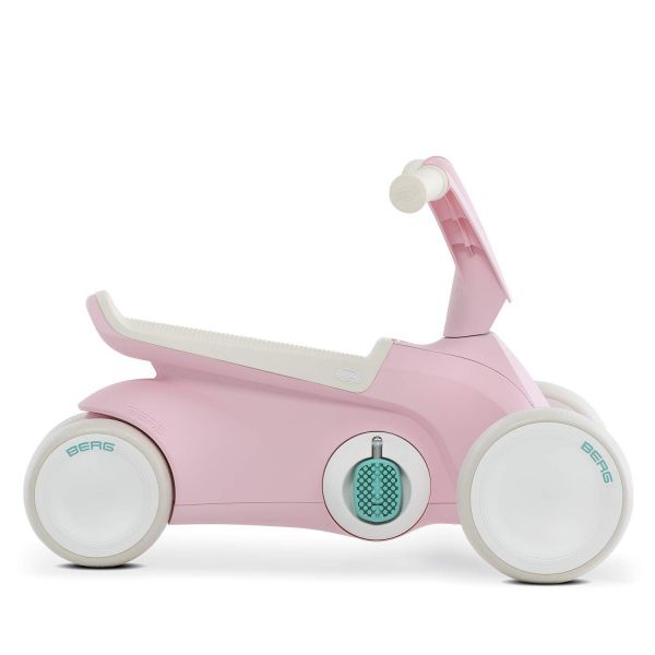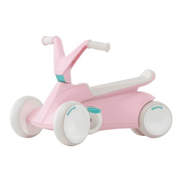 Copilul tău învață mai întâi să meargă pe un rider și apoi să pedaleze BERG GO². Micii aventurieri încep cu pedalele pliate și exersează miscarea în timp ce stau pe kart. Ulterior se pot desface pedalele. Datorită construcției sale inteligente, BERG Go² este proiectat pentru a fi folosit ca mașină de mers pe jos, fără ca pedalele sau roțile din spate să incurce miscarile. BERG GO² stă perfect pe sol avand un echilibru sporit cu cele patru roți. La urma urmei, siguranța este pe primul loc!