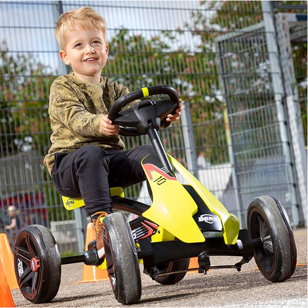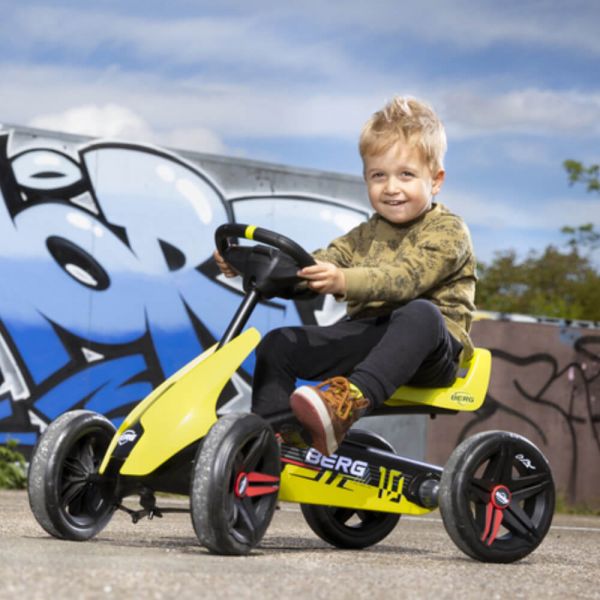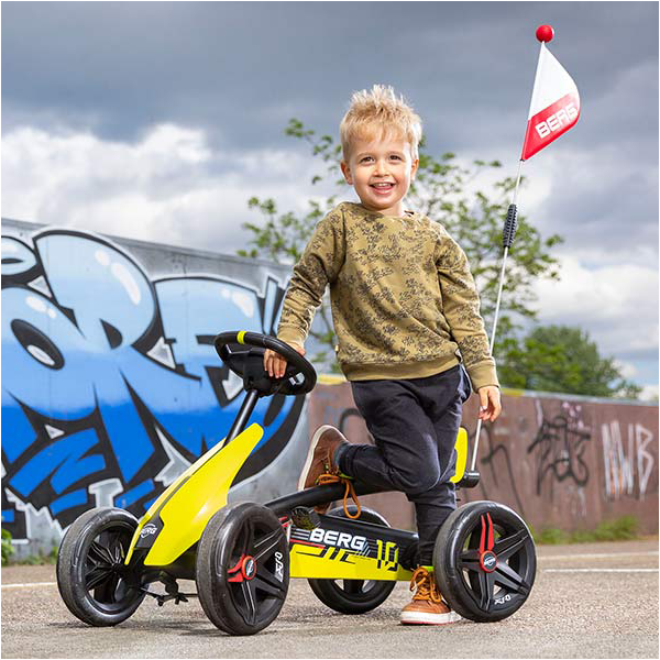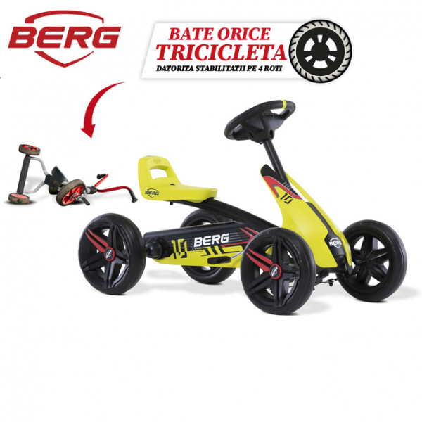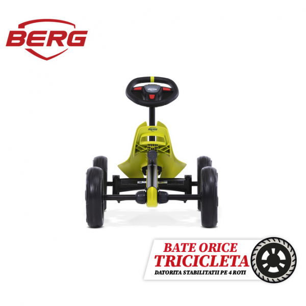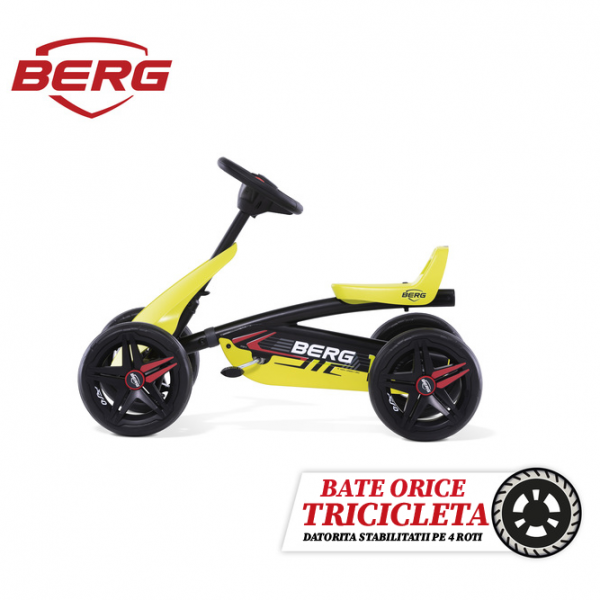 BERG Buzzy Aero reprezinta primul kart de curse pentru copilul tau! Acest go-kart boneta rezistenta, cadrul robust si cauciucurile de curse garanteaza o adevarata experienta de curse. Cele 4 cauciucuri EVA pastreaza stabilitatea kartului la cele mai ascutite curbe. Pe Aero, copiii pot pedala inainte sau inapoi si pot frana spontan cu ajutorul pedalelor.