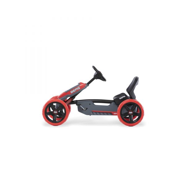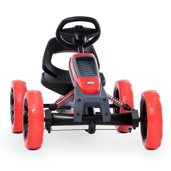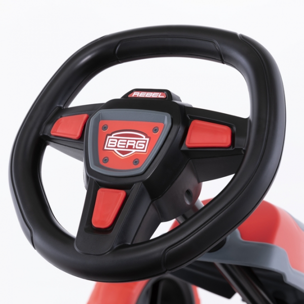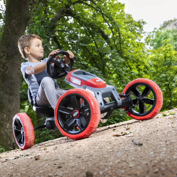 Design-ul atractiv al kartului Reppy Rider va face ca orice copil sa doreasca sa-si strabata vecinatatile cu el. Volanul sportiv, cauciucurile din EVA de 25 cm ce nu se pot dezumfla, sezutul comfortabil in forma de galeata, precum si axul solid, fac kartingul o distractie de exceptie. BERG Reppy este primul kart pentru copii cu o intrare joasa, datorita sezutului jos in forma de galeata.