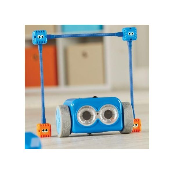 Setul include: robotelul Botley 2.0, telecomanda, 2 perechi de brate detasabile colorate diferit, 40 carduri cu elemente de codare, 6 placute tip puzzle din carton, 6 betisoare, 11 cuburi, 2 conuri, 2 steaguri, 2 bile, 1 dispozitiv pentru finis