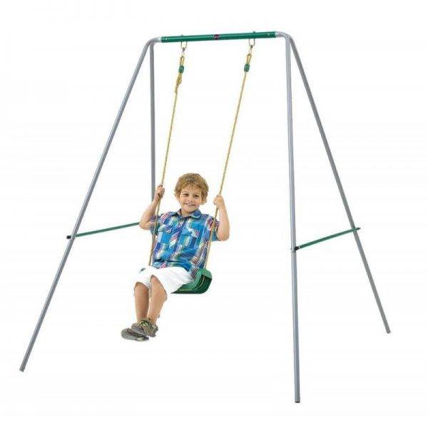 Set clasic de leagan din metal, perfect pentru a ajuta copiii să exerseze și să-și dezvolte echilibrul, coordonarea și puterea.Ideal pentru joaca și exercițiu în aer liber, ocupand totodata un spatiu o mic în grădină. Sezut inclus, din plastic turnat prin injecție, reglabil pe inaltime.