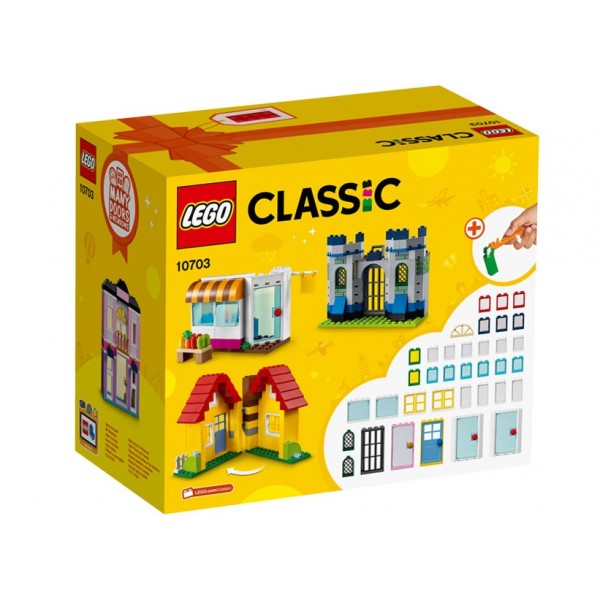 Bucura-te de o lume nesfarsita de distractie si creativitate cu acest set de constructii LEGO Classic, ce include o gama imensa de usi, ferestre, forme si elemente speciale in culori vii si intense. Creeaza case frumoase, magazine interesante, cafenele confortabile, pagode ornamentale, castele magice si altele. Vezi ghidul inclus sau mergi on-line pentru idei si inspiratie. Viseaza, construieste si joaca-te cu seturile de constructie LEGO Classic!