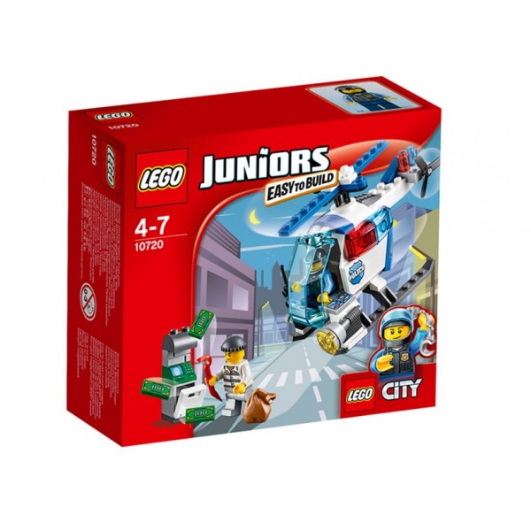 Vegheaza asupra orasului in elicopterul de politie LEGO Juniori! Zareste hotul care incearca sa sparga bancomatul iar apoi coboara in zbor si prinde-l in flagrant. Poti ajuta politia sa protejeze si sa ajute. LEGO Juniori iti permite sa te distrezi si sa ai o experienta minunata de constructie!