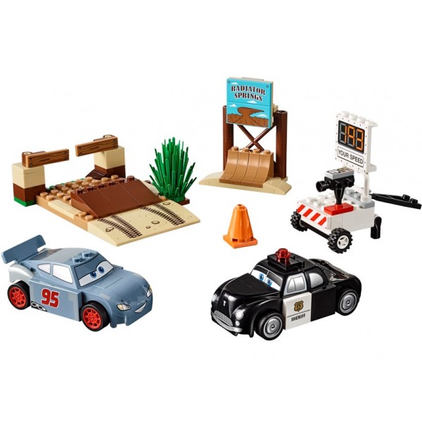 Depaseste viteza maxima cu Fulger McQueen de la Disney Pixar in timpul antrenamentului de la Dealul abrupt al lui Willy. Condu-l pe Sheriff in pozitie si pregateste-te sa masori cu radarul viteza masinii de curse campioane care trece, doboara semnul rutier de la Valea Radiatorului si strapunge un baraj rutier. Este un record! Dar il poate oare dobori inca o data Fulger McQueen?