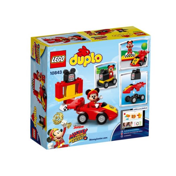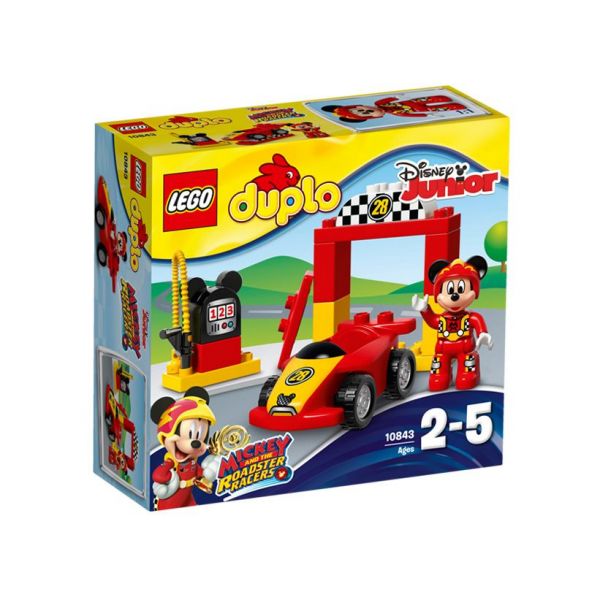 Mici fani ai lui Mickey Mouse vor fi incantati sa construiasca si sa reconstruiasca masina de curse, poarta de start si pompa de benzina in forma de Mickey. Ajuta-i sa-si dezvolte abilitatile motrice fine, jucandu-se de-a alimentarea si reglarea masinii pentru cursa. Apoi alinierea la poarta de start si ... a demarat! Include o figurina LEGO DUPLO: Mickey Mouse de la Disney.