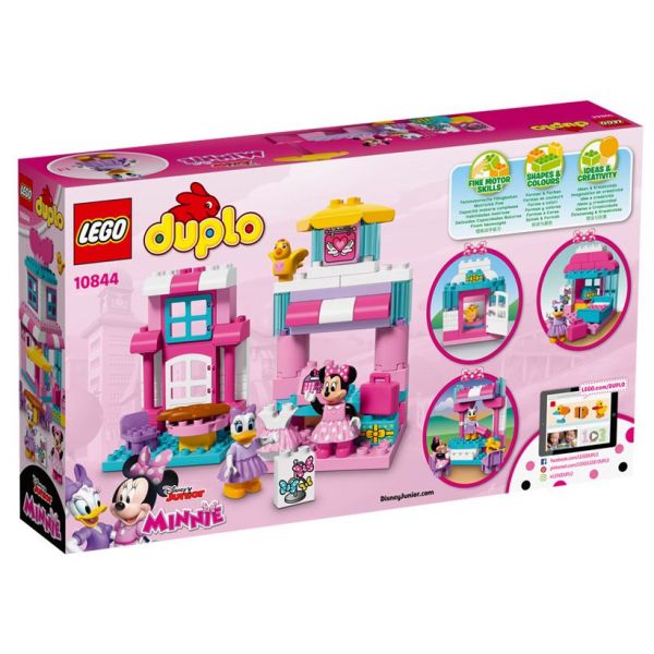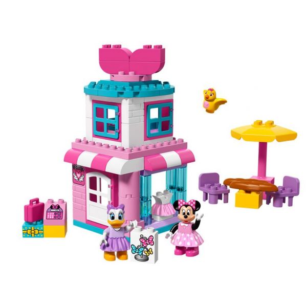 Micii fani ai lui Minnie Mouse de la Disney vor fi incantati sa exerseze deprinderi de joaca pe roluri, vanzand funde si fuste in magazinul de la parter, intampinand-o pe Daisy Duck si stand afara la o masa cu ea, apoi ducand-o la etaj pe Minnie Mouse pentru un somn odihnitor in dormitor. Ajuta-i sa reconstruiasca modelul in multe moduri diferite pentru a le incuraja imaginatia si a le dezvolta abilitatile motrice fine. Include doua figuri LEGO DUPLO, plus o figurina cuc.
