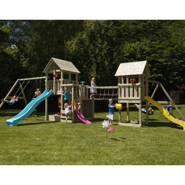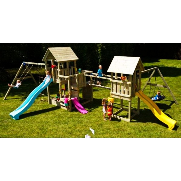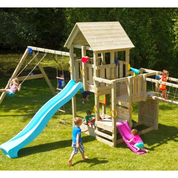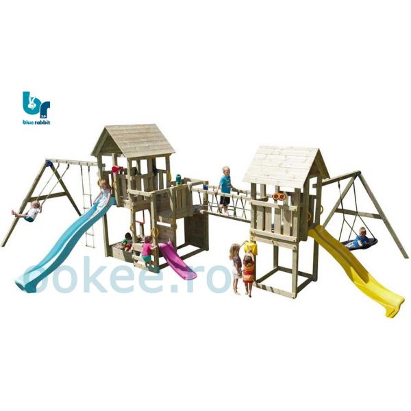 Acest minunat spatiu de joaca Mega BlueRabbit combina multiple forme de joaca transformand curtea in cel mai indragit loc de joaca.