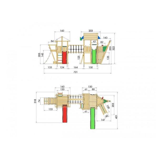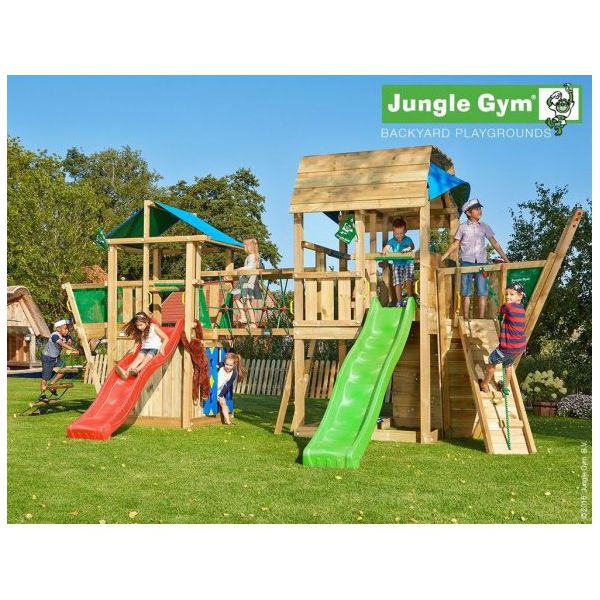 Complex de joaca din lemn cu doua turnuri si pod Jungle Gym