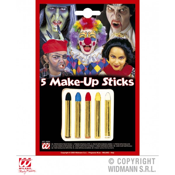 Setul contine 5 creioane cu ajutorul carora puteti realiza machiaje pentru diferite personaje cum ar fi: vrajitoare, vampir, clown, pirat, indian, chinez etc.