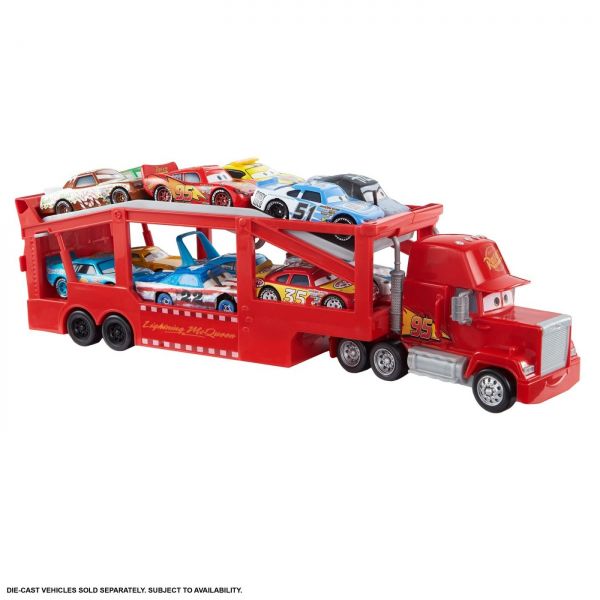 Cu camionul Mack Masini de la Disney si Pixar, niciun concurent nu e lasat in urma! Acest Mack are 33 cm lungime si poate depozita 12 de masini (se vand separat). Deschideti spatele acestui transportator pentru a incarca si descarca; platforma superioara se coboara pentru a deveni o rampa lunga, pentru acces usor la zona superioara. Cand toata lumea s-a imbarcat, impingeti pentru a incepe aventura!