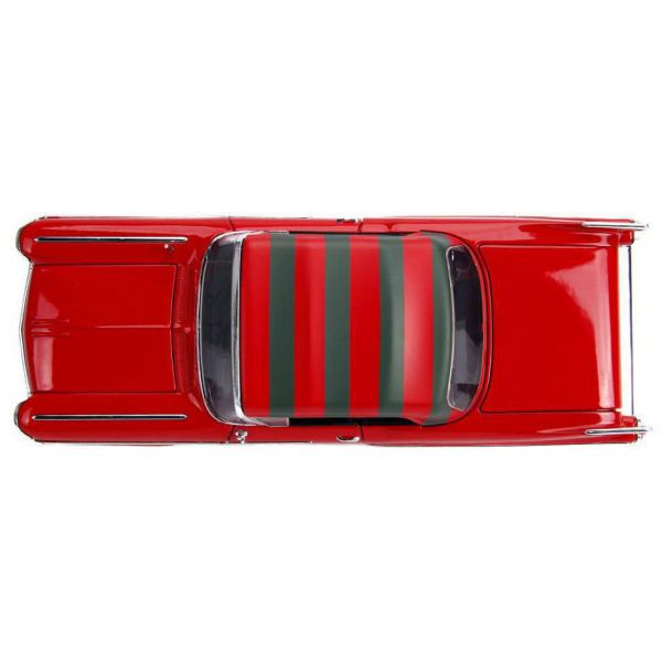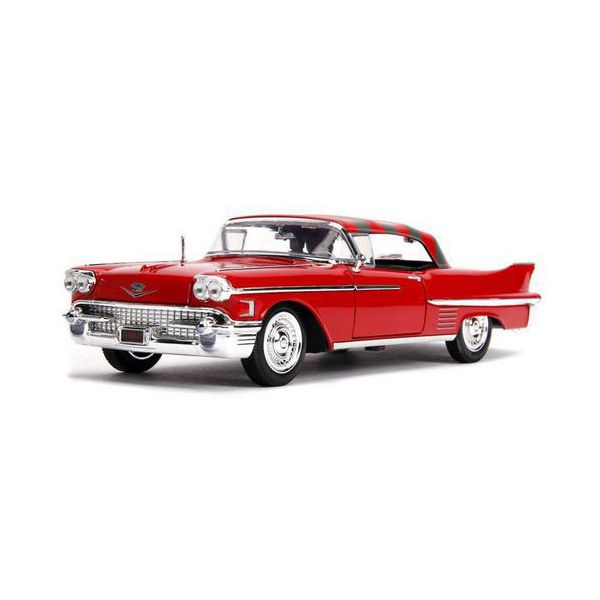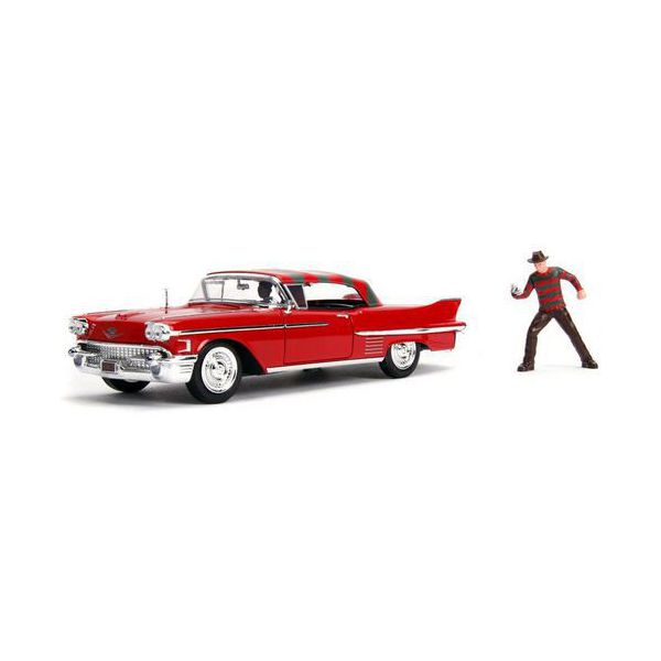 Masinuta de metal Cadillac 1958, scara 1:24, + figurina de metal Freddy Krueger Man, 7 cm, usile si capota se pot deschide