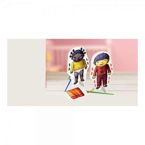 Hainele trebuie sa fie configurate si cusute pe siluetele copiilor.