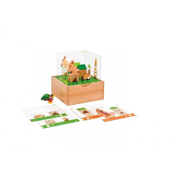 Prin intermediul cardurilor de atribuire transparente copiii vor trebui sa construiasca scene din padure.