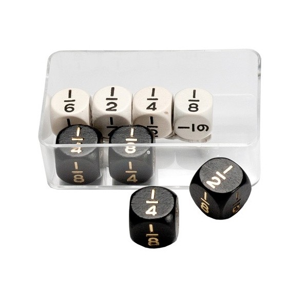 Setul include 8 zaruri din lemn ambalate intr-o cutie de plastic transparenta.