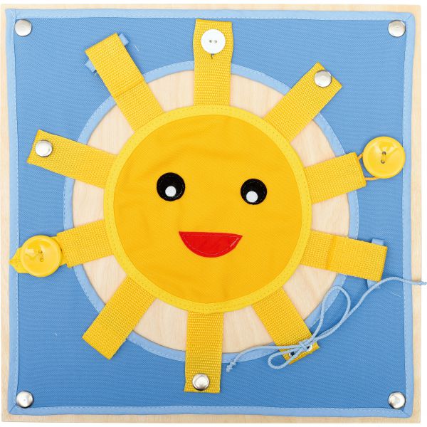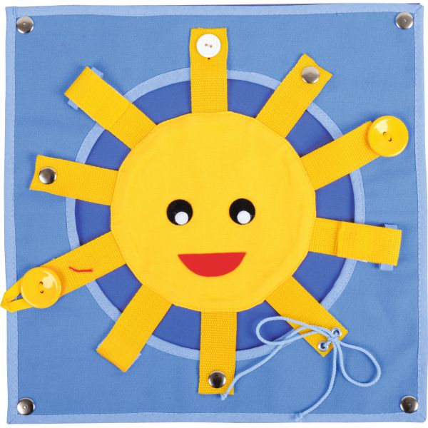 - Diferitele tipuri de fixări așezate pe soare vă permit să vă exersați degetele și vă învata abilitățile de bază necesare pentru a vă îmbrăca.