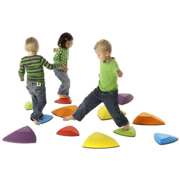 Sarcina participantului este să sară de la piatră la piatră cu echilibru. Jocul antrenează coordonarea motorului, echilibrul și flexibilitatea. Elementele din partea de jos sunt fixate cu plăcuțe de cauciuc pentru a preveni alunecarea în timpul jocului.