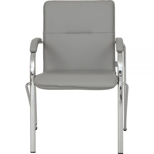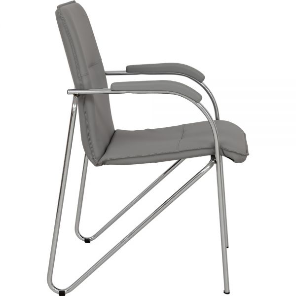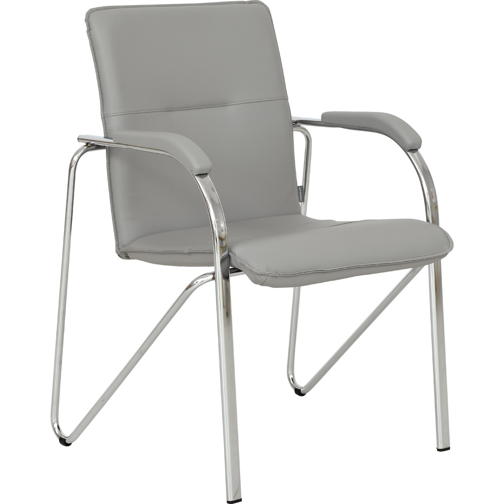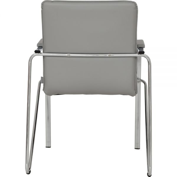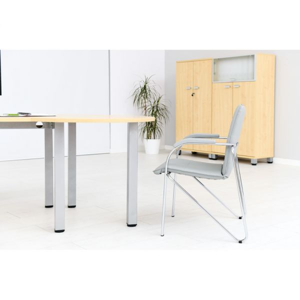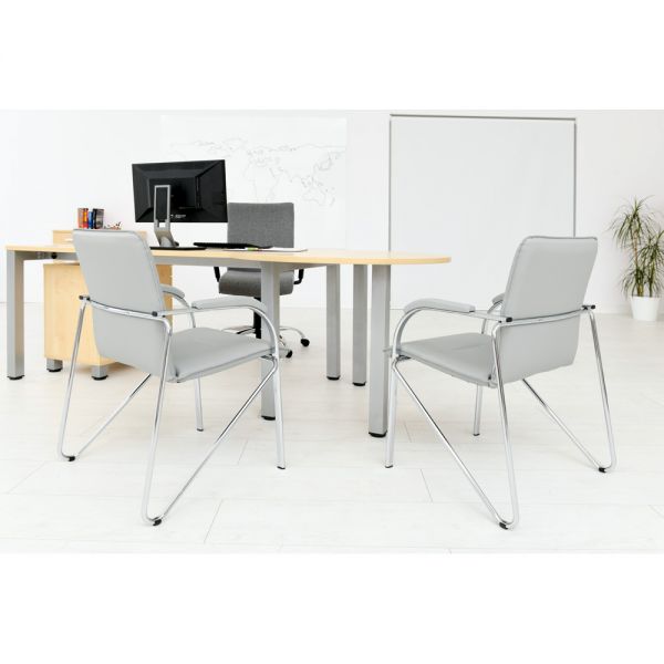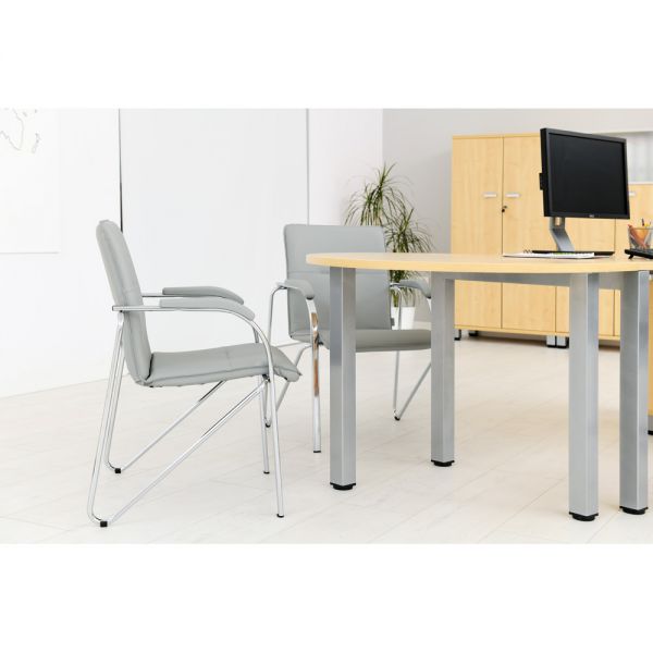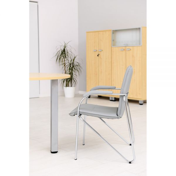 Scaun tapitat cu picioare din aluminiu, cotiere, stivuibil, gri