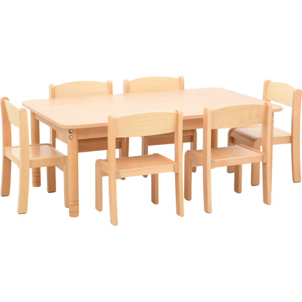 Setul include o masa dreptunghiulara si scaune marimea 1. Este destinat in principal copiilor de la gradinita.