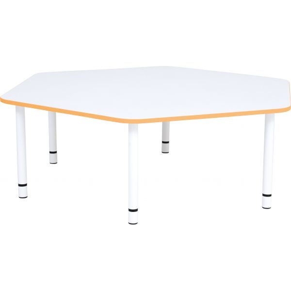 Blat de masa alb hexagonal Quadro cu cant portocaliu