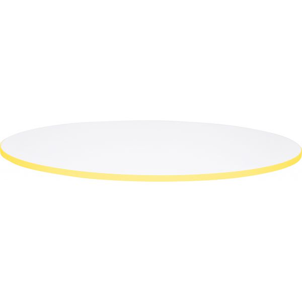 Blat de masa alb rotund Quadro cu cant galben