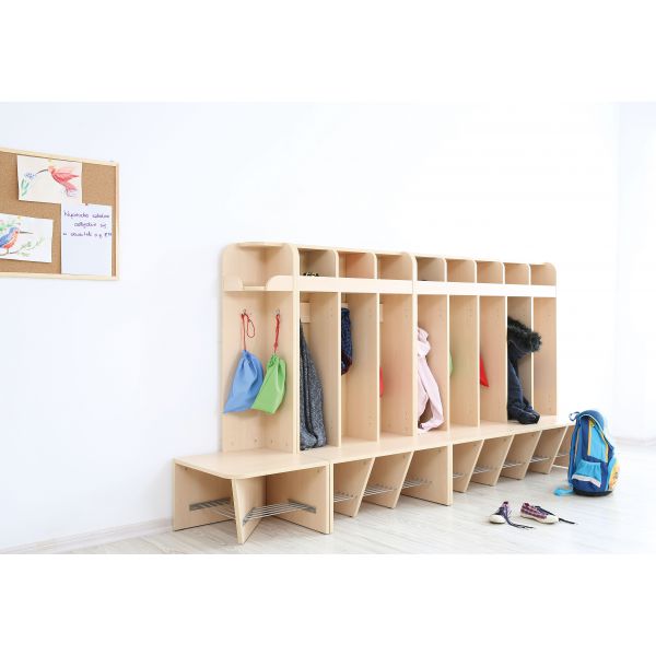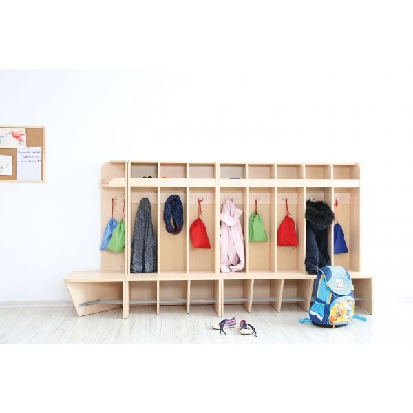Coltar extern dotat cu un raft, 2 locuri pentru incaltaminte si cuiere pentru haine si genti.